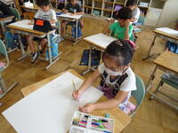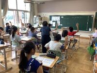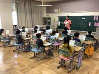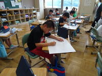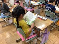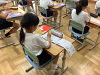1年生の国語の授業です。物語文「やくそく」を音読していました。教科書を立てて、姿勢良く音読している姿はとても立派でした。今回の授業では「 」に注目し、誰が何を言ったのかを確かめながら読みました。