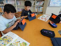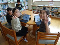 三島西麓野菜について調べ学習を進めています。今日は、図書室で野菜について調べて、タブレットを使ってまとめていました。