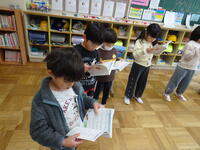 「校歌」や「もみじ」を元気に歌っていました。たくさんの曲を知ることができるといいですね。