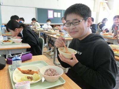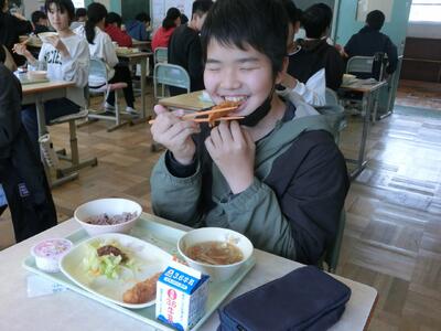 6年生にとっては、今日が小学校生活最後の給食。本当に、本当に、おいしかった沢地小学校の給食。子供たちは今日も、エビフライやお赤飯を頬張りながら、幸せそうに給食を食べていました。