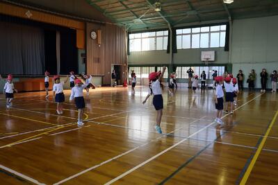 1年生が、学年集会を行いました。自分たちで司会をして、今日のゲームは「ころがしドッジ」です。みんな元気いっぱい楽しみました。