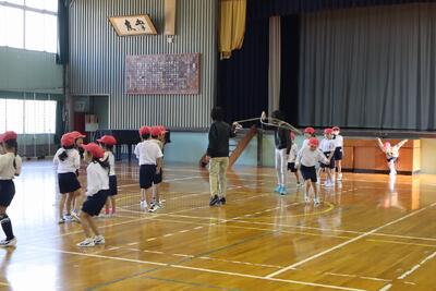 3時間目は、1年生が体育館で公開授業を行いました。準備体操の後は、三島サンバを笑顔でパワー全開で踊りました。ダンスの後は、跳び縄や長縄で頑張る1年生の姿を参観していただきました。1年生の子供たち、御家族の皆さんに見守られて、一生懸命取り組んでいました。