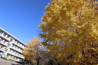 12月に入りましたが、子供たちは寒さに負けず、元気に外遊びを楽しんでいます。校庭のイチョウの葉が、太陽の光に照らされて、とてもきれいです。