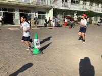 今朝はかなり冷え込みましたが、20分休みには、子供たちが校庭で元気に運動をしています。1年生が、タイヤ跳びじゃんけんで、仲良く遊んでいました。まずは、チーム分けをしてからスタートです。バランスをとってタイヤの上をどんどん進んでいきます。
