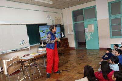 2年生の1月に、スギヤマカナヨさんとワークショップで楽しい時間をすごした3年生。今日は1年ぶりに絵本作家スギヤマカナヨさんと再会しました。「みんな、おおきくなりましたね。」「カナヨさん、久しぶりです。こんにちは。」笑顔での交流の時間でした。「みんないっしょ」をテーマに読み聞かせをしていただきました。
