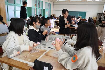 6年生が、キャリア教育でみしまプラザホテルからの講師をお招きし、講話を聴いたり、活動を行ったりしました。ウエディングアドバイザーの仕事のやりがいや身につけるスキルなど、貴重なお話を教えていただきました。講義の後半は、子供たちがブートニア作りに挑戦しました。