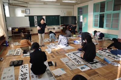6年生が書写の授業で、書き初めの練習をしました。今日は大村佳代先生が、沢地小にゲストティーチャーとして来て下さり、子供たちといっしょに授業をしてくださいました。6年生の集中して書き初めに取り組むことができました。