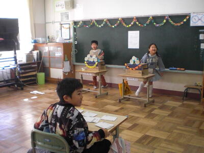 5年生は、学習発表会で学習の成果を発表しました。6年生は「未来の自分へ」のテーマについて、クラス内発表を行いました。