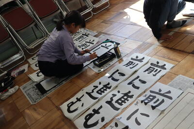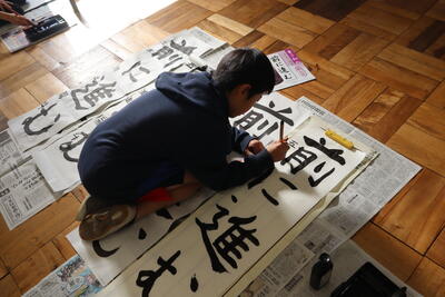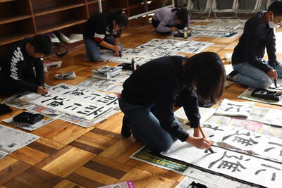 5年生が、書写の時間に書き初めの練習をしました。筆の運びに気をつけながら、集中して練習に取り組んでいます。