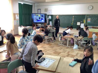 今日は、ALTのユアン・ロス先生が、1、2年生の外国語活動の授業をしてくださいました。クリスマスにちなんだ間違い探しゲームでは、ユアン先生の英語のヒントを聞いて、班のお友達と一緒にたくさんの間違いを探すことができました。また、ジェスチャーゲームでは、先生達のジェスチャーを見て、どんな気持ちかを楽しく英語で答えることができました。