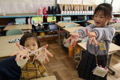 1年生の生活科では、昔の遊びを子供たちが楽しんでいます。けん玉やあやとり、お手玉など、夢中で取り組む1年生、すてきです。