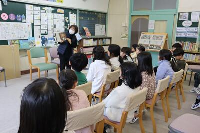今日の昼休みには、図書室でおたまじゃくしの会のボランティアに皆様による読み聞かせが行われました。