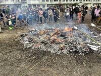 たくさんの児童や卒業生が「どんど焼き」にきました。