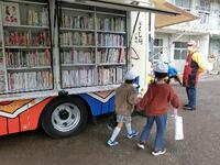 昼休み、ジンタ号の中をのぞき込むと、本好きの子供たちで賑わっていました。近隣の保育園の子供たちも小学校にやってきて、嬉しそうに本を借りていました。