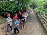 今日は、生活科の学区探検で、富士見台公園まで歩いて遊びに行きました。公園の地面には、まだ水たまりが見られましたが、虫探しや鬼ごっこをして楽しそうに遊びました。