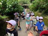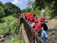 生活科の時間に、学校の周りを探検しました。きれいに咲いているあじさいを見たり、川を泳いでいる魚を見つけたりしました。