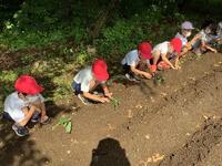 生活科の時間に、さつまいもを植えました。先生の説明をしっかり聞き、上手に植えることができました。これから、水やりや草取りをしながら成長を見守っていきます。