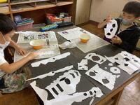 図工「はさみのあーと」の学習では、はさみで自由に切った形から、想像を膨らませて作品を仕上げていきました。「これは○○に見える!」と、偶発的にできた形をいろんな物に見立てて楽しんでいました。