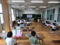2年生の教室へいくと、算数で「水のかさ」の学習をしていました。「どちらの水筒の方がたくさん水が入っているのだろう?」 疑問に思った子供たちは、比べる方法を一生懸命考えて、確かめていました。