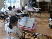 子供たちは鍵盤ハーモニカやタブレットを使って「ぷっかりくじら」という曲を一生懸命練習していました。