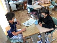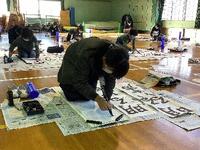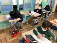 5・6時間目の時間を使って、2クラス合同で書き初めの練習を行いました。4年生の字は「明るい声」です。お手本のように書こうと集中して取り組みました。