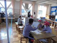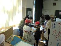 4年1組のお店 「目指せ!防災マスター!」の様子です。このお店では、防災についてクイズや体験を通して知ることができるお店です。どの子も自信をもってお店を運営しており、本番にも向けて練習してきた成果が出ていました。新聞紙を用いた防災スリッパには、「こんなに簡単に作れるんだ!」と、驚いているお客さんが多かったです。