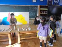 4年生は、図工の学習で初めて彫刻刀を使っています。最初は恐る恐る使っていましたが、慣れてくると、「(彫るときに)いい音がするようになった」「すーっと長く彫れた」など、喜びの声が挙がるようになりました。
