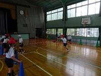 4年生の朝運動の様子です。変化走の4つの種目の内、ボールドリブルとボールキャッチの練習風景です。ボールドリブルでは、素早いドリブルとボールコントロールの両立ができると良いですね。ボールキャッチは、頭より上でキャッチする練習です。バレーボールのように両手で三角形を作ると、上手にとれると子供たちは話していました。