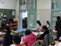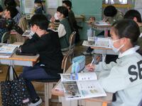 地震によってどのような災害が起こるのか、過去の体験を思い出したり、資料を調べたりしながらみんなで話し合いました。教師が、「沢地小の校舎も何年か前に、大地震に備えて耐震工事をしたんだよ」という話をすると、子供たちはとても興味深そうに話を聞いていました。
