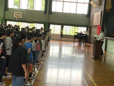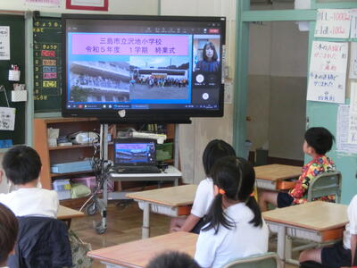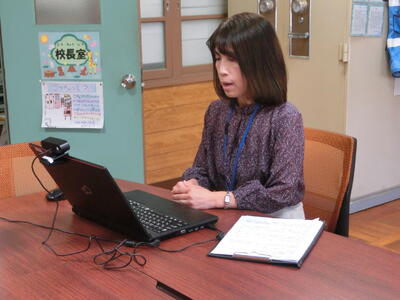 1学期の終業式がオンラインで行われました。校長先生の話では、各学年の輝いていた場面がスライドで紹介されました。
