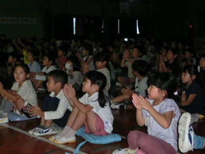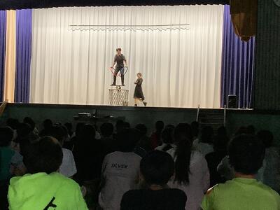 午後は、4,5,6年生が芸術鑑賞をしました。パフォーマンスに釘付けの子供たち。大きな拍手が、1つになり、演技をする方に届きました。鑑賞の仕方もさすが高学年です。日本トップレベルのチャレンジする姿からたくさんのことを感じることができたと思います。