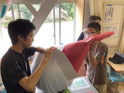 4年生の理科の時間に、くらりか静岡の皆さまによる、出前授業が行われました。水の入ったペットボトルを押したり、離したりすることで、中にあるものが浮いたり沈んだりする、圧力と浮力の関係を利用したおもちゃ「浮沈子(ふちんし)」について、教えていただき、実際に浮沈子を作って、さまざまな実験を行いました。