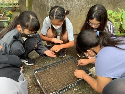 2年生の生活科の授業では、子供たちが自分の植木鉢に二十日大根の種を蒔きました。今日は、芽が出てきた二十日大根の観察をして、絵を描いたり、気が付いたことを自分の言葉で表現したりしました。授業の最初には、外の畑に小松菜の種を植えました。「たねが黒ごまみたい。」と言いながら、丁寧に土の上に種を蒔いていきました。成長が楽しみですね。