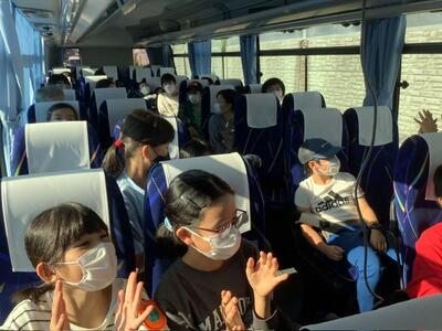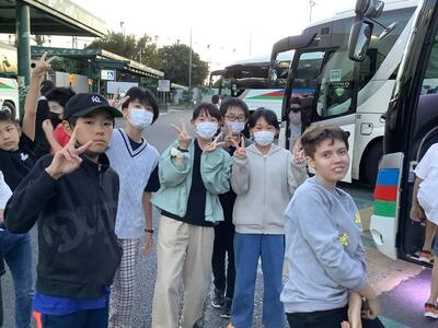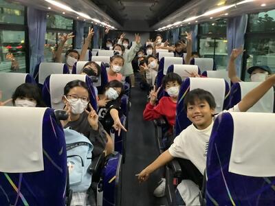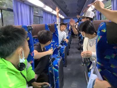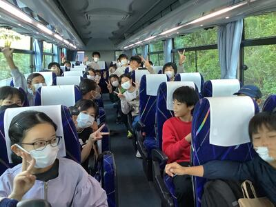修学旅行1日目、楽しい活動ができました。今ホテルに向かっています。全員、元気です。今日のブログは、最終とさせていただきます。ホテル到着後の様子は、明日投稿しますので、お楽しみに