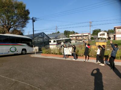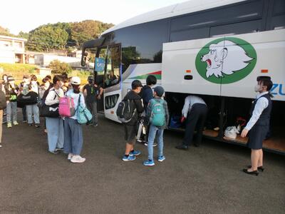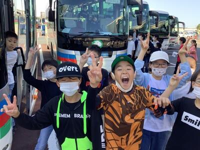 素晴らしい秋晴れの中、沢地小学校6年生修学旅行がスタートしました。先生たちに見送られて元気に学校を出発しました。最高の2日間にしましょう。