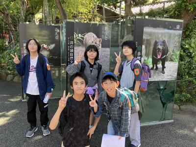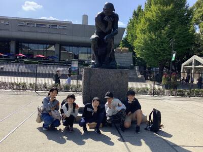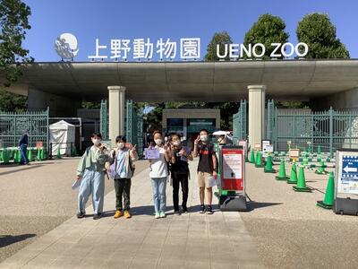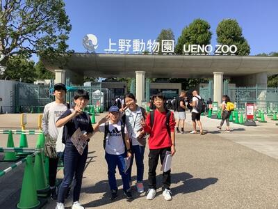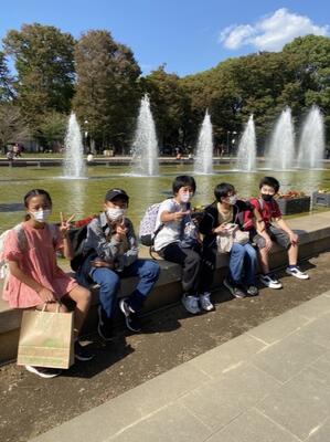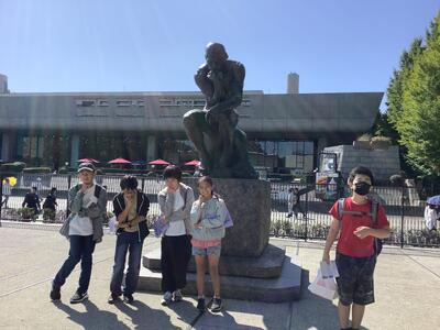 科学博物館前で集合写真をパチリ。お弁当を受け取り、上野公園で班行動スタートです。
