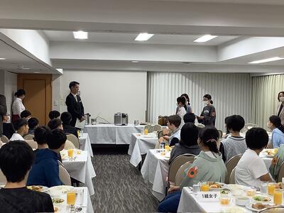 2日目スタートしました。みんな、元気です。朝のつどいでは、ホテルの方にお礼の挨拶もできました。