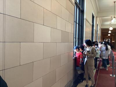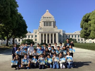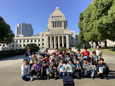 今日も晴天に恵まれました。国の政治の中枢である国家議事堂で衆議院議員さんのお話を聞き、議事堂内を見学しました。国会議事堂では主に①法律を約100本作る②内閣総理大臣を指名する③国家予算を決めることをしています。