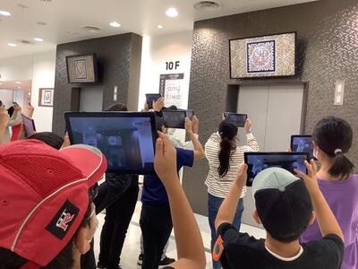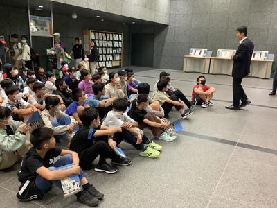 2年生が上手にリードしながら、ペアで仲良く館内を見学しています。