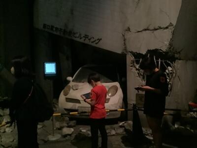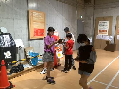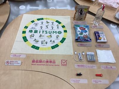 首都直下地震が発生した場合、発生後72時間をどう行動するか、タブレットを使って体験したり、映像から考えたりすることができました。