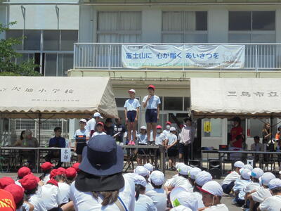 本日より計画委員会による「あいさつ活動」が始まりました。沢地小学校では、昨年度から山田中学校、山田小学校と共に、3校合同で「あいさつ運動」を行っています。今朝は計画委員の子達に加え、ボランティアの子達も何人か加わり、元気で気持ちの良いあいさつが飛び交っていました。