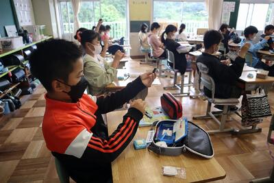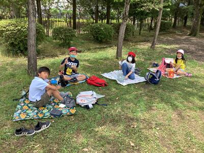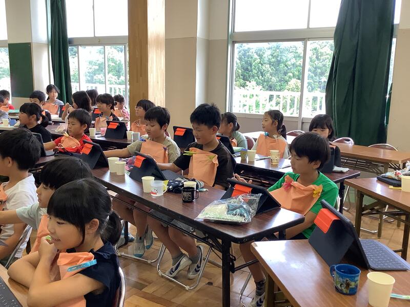 自然教室が終わった後の、当日の様に元気いっぱいに過ごす5年生です。