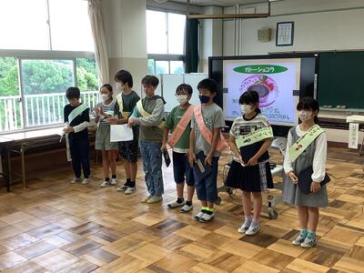 自然教室中に行った先生企画の「だれが家族のお弁当をおいしく食べているか選手権」の投票の様子です。当日、企画に参加してくれた有志の中で、特にだれが素敵かを楽しそうに投票していました。