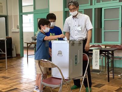 三島市役所の選挙管理委員会の方々が来校し、選挙講座を行ってくださいました。実際に選挙に関わるお仕事や投票を体験することができ、楽しく学習できました。