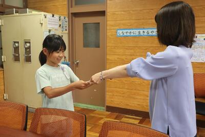 耳が聞こえないことについての話の後、事前に子供達に聞いた「やってみたい手話」を中心に、手話をみんなで行いました。