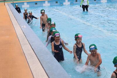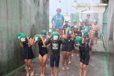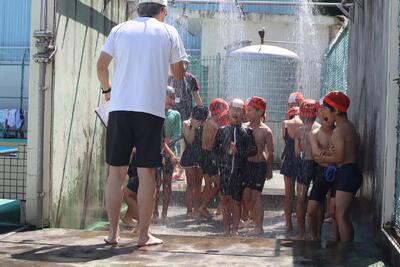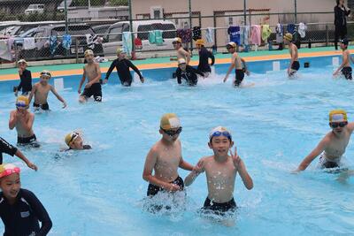 2年生のプール開きが行われました。とても良い天気で、みんな気持ちよさそうでした。
