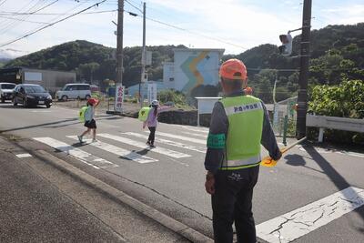 沢地小の子供たちは、スクールガードの皆様に毎日あたたかく見守られ、元気に登校しています。がんばり坂のあじさいが、とてもきれいに咲いています。
