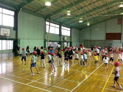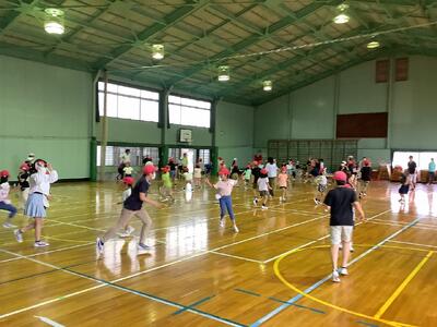 今日は、1年生と5年生が交流遊びを行いました。ドラキュラにタッチされないように、みんな夢中で走り抜けていました。