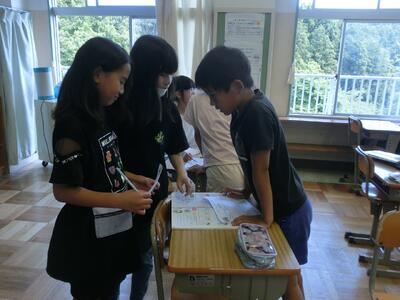また、投票している傍ら、自然教室の実行委員がクラスで書いた「お礼の手紙」を貼り付けをしている様子がありました。子どもたちが当日全力で楽しむことができたもの、このように陰で、みんなのために行動し、支えてくれる存在がいてこそですね。本当にありがとう。