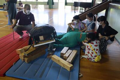 沢地小学校の体育館で 「粋なおやじの会」主催の「イザ!カエルキャラバン!」が開催されています。コロナの影響で開催されていなかったこの催しも久しぶりの再開です。今日は、午前中から、子供たちのために「粋なおやじの会」の皆様が準備をしてくださいました。三島市消防団第3分団の皆様も応援にかけつけてくださいました。水消火器体験、ジャッキアップ、防災カルタ、なまずの学校カードゲーム、起震車体験など、子どもたちは、友達と一緒に楽しみながら防災を学んでいます。